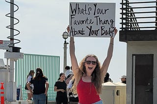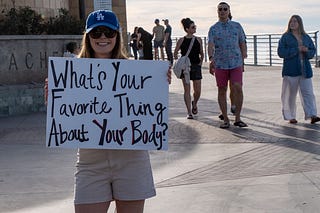 I took a sign that says, "What's Your Favorite Thing About Your Body?" and stood on a walking path for four hours. This is what happened.