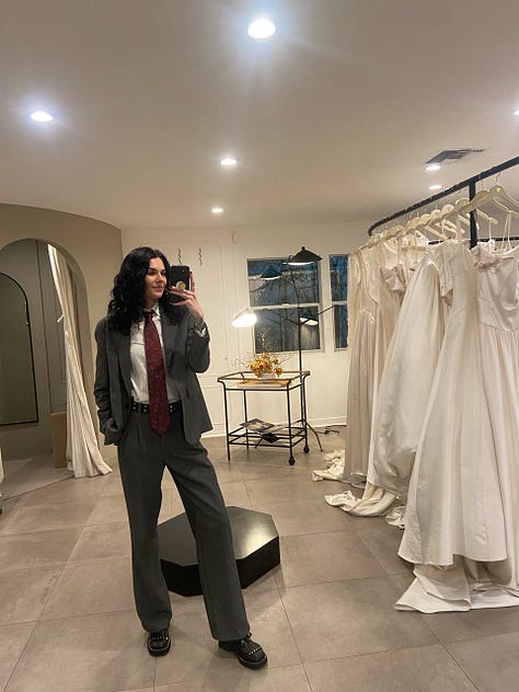 Destiny Allen: Yeah. But that’s also my goal in bridal is to have my own shop and have more of a comfortable space for queer people as well. I wanna have a section for bridal suits.